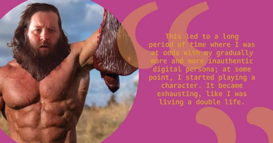 This led to a long period of time where I was at odds with my gradually more and more inauthentic digital persona; at some point, I started playing a character. It became exhausting, like I was living a double life. I’m grateful, however, because by going through this process, I learned how to perform more authentically as myself.
